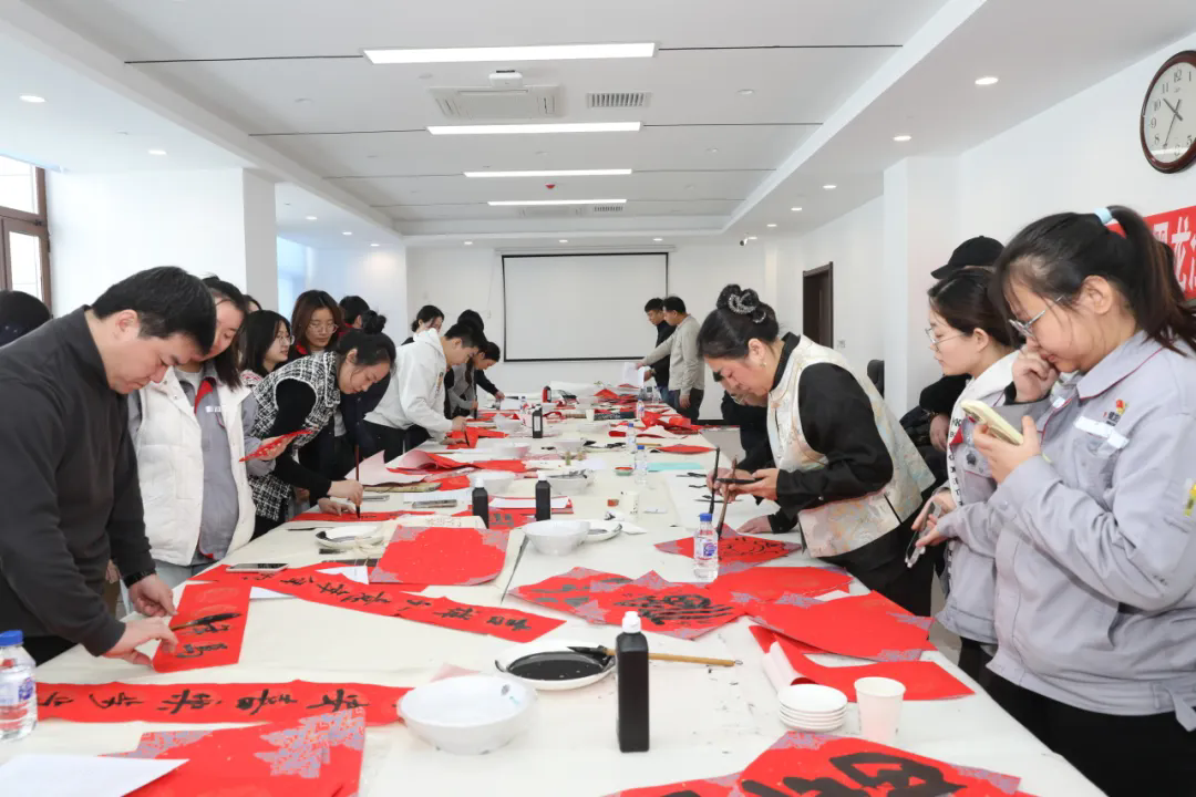 书法家挥毫泼墨,一个个饱满的“福”字跃然纸上,一副副蕴含吉祥的春联气韵生动。其中“匠心筑梦”“实干争先”等贴近工业气质、又饱含美好寓意的作品尤为受欢迎。职工被现场气氛感染,在艺术家的鼓励下也拿起毛笔,饶有兴致地学着、试着写下自己的新春“福”字,体验传统文化的笔墨趣味。