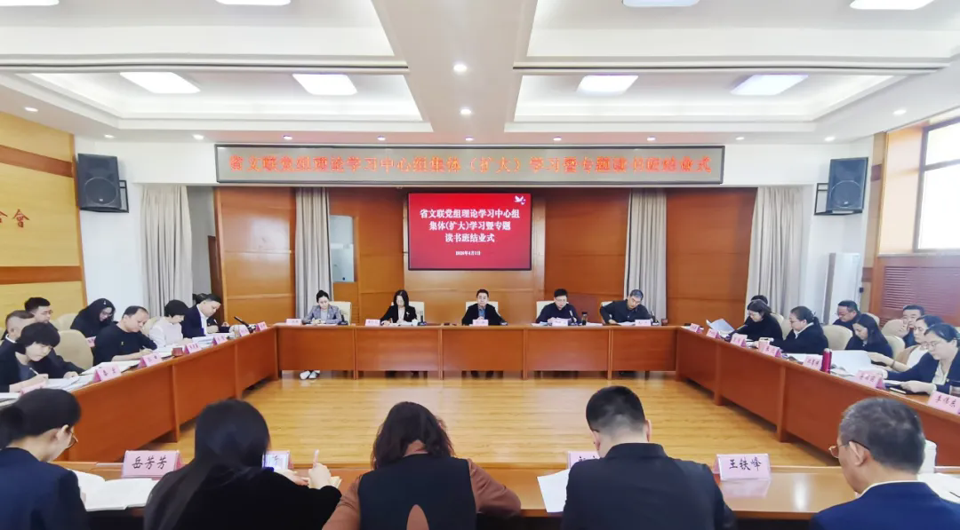 4月1日,省文联党组理论学习中心组集体(扩大)学习暨树立和践行正确政绩观学习教育专题读书班结业式举行。党组书记马新主持会议并讲话,理论学习中心组成员及各党支部代表在会上作交流发言,机关全体党员干部参加会议。