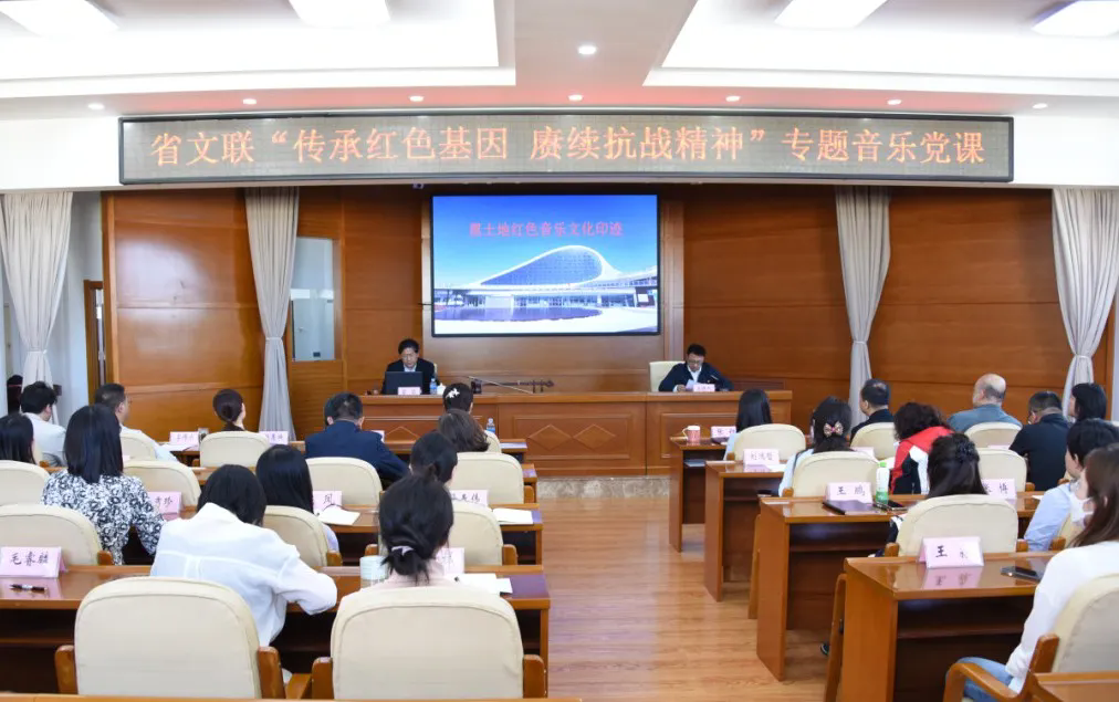 9月18日下午,省文联组织举办“传承红色基因 赓续抗战精神”专题音乐党课,以一场浸润心灵的红色经典音乐课堂,深切缅怀革命先烈、弘扬伟大抗战精神,用实际行动践行习近平总书记“讲好抗战故事,把伟大抗战精神一代代传下去”的重要指示精神。