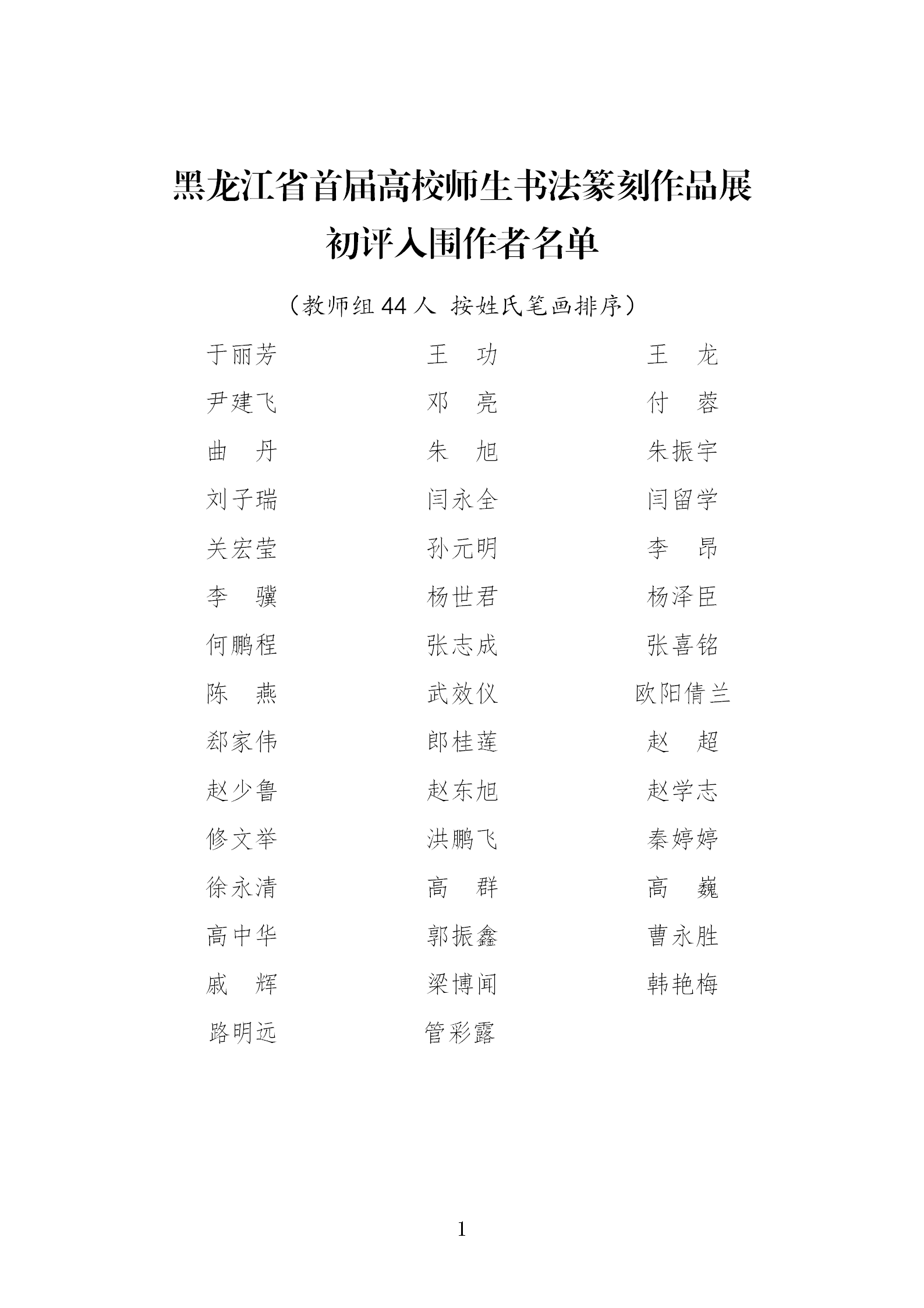 现将“黑龙江省首届高校师生书法篆刻作品展”初评结果公布如下,请初评入围作者于2025年11月20日前务必将装裱后作品(必须为白绫装裱卷轴、尺寸统一高度为230cm,宽度适宜)邮寄(送)至:黑龙江省哈尔滨市香坊区电碳路64号。