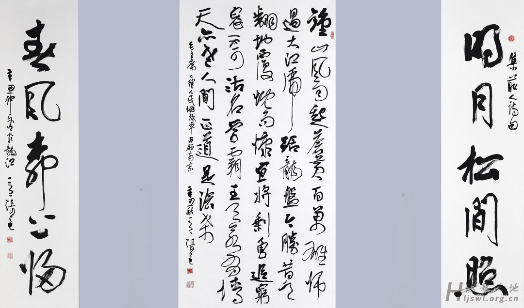 左:王维李白诗句《明月春风》2中:毛主席《七律·人民解放军占领南京》右:王维李白诗句《明月春风》1