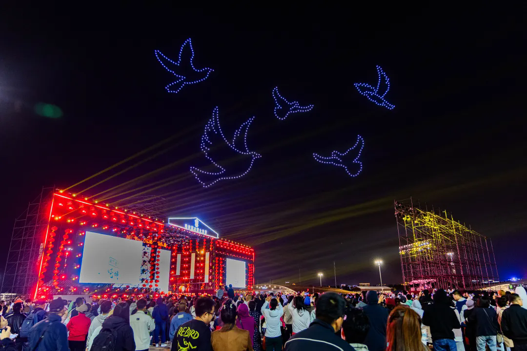 演出突破传统舞台边界,以科技为笔勾勒视听奇境。演出中穿插超震撼的无人机表演,万千光点在夜空拼出绝美画面;浪漫烟花秀华丽绽放,璀璨火光与舞台光影交相辉映,打造前所未有的视觉奇观。科技与艺术的完美融合,为观众带来全方位、沉浸式的感官体验,让这场惠民演出成为兼具观赏性与震撼力的文化大餐。