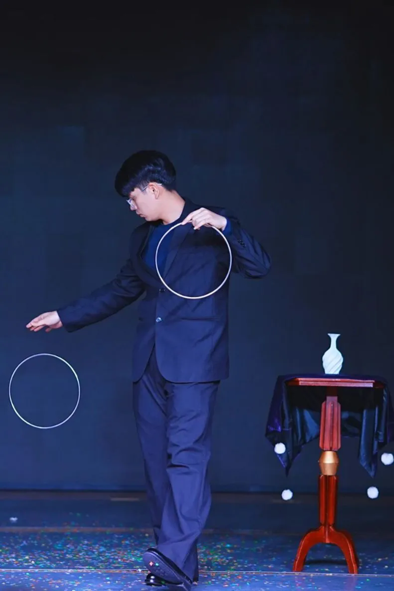 多元节目碰撞,展现魔术新势力。15个节目在展演中轮番登场,选手们将传统戏法与现代表演形式结合,近景魔术《仙人摘豆》《魔幻奇迹》以精妙手法与互动性引发观众惊叹;舞台魔术《一个音乐梦 》《玫瑰纱影》则营造出一个轻松的氛围,《巧打连环》配合说口,手法和舞台表现力,赢得观众的掌声;《大变金钱》巧妙融入传统文化太极元素,展现高校魔术爱好者的创新思维。现场观众沉浸于“魔法世界”,掌声与欢呼声此起彼伏,不少市民驻足围观,直呼“意犹未尽”。