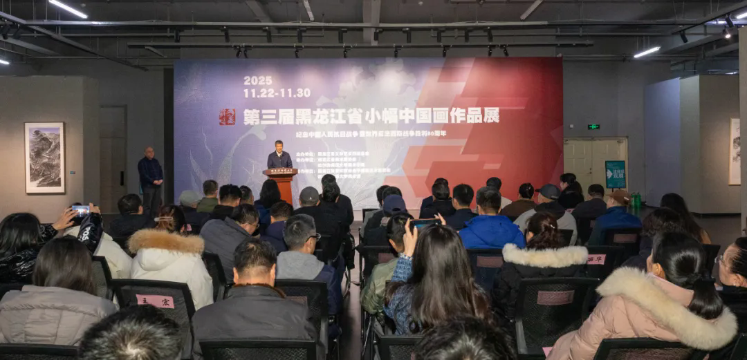 墨韵凝香,尺幅含章。当北疆的林海雪原浸润着笔墨意趣,当黑土的人文风情凝聚于方寸画笺,11月26日上午,由黑龙江省文学艺术界联合会主办,黑龙江省美术家协会、哈尔滨师范大学美术学院承办,黑龙江省美协中国画艺术委员会、哈尔滨师范大学美术馆协办的“纪念中国人民抗日战争暨世界反法西斯战争胜利80周年——第三届黑龙江省小幅中国画作品展”在哈尔滨师范大学美术馆开幕。