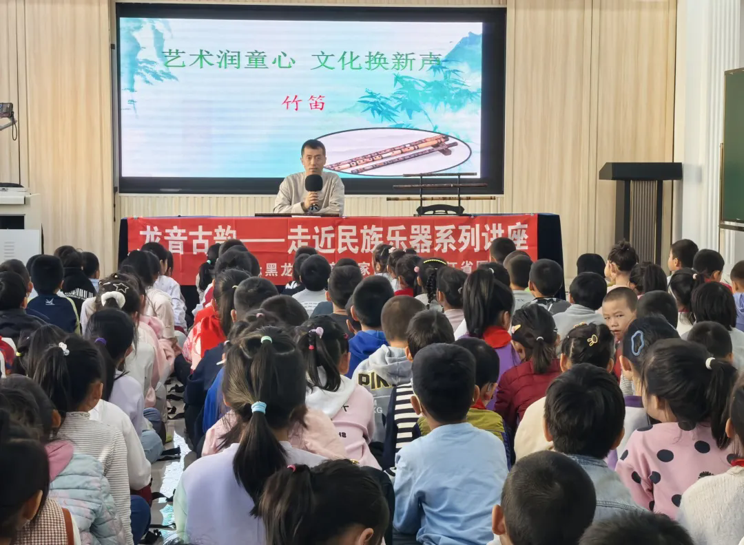 为深入弘扬中华优秀传统文化,推动民族音乐普及教育,10月23日,由黑龙江省音乐家协会与黑龙江省图书馆联合主办的“龙音古韵——走近民族乐器系列讲座”第52期在哈尔滨医科大学附属逸夫小学校举办。本期邀请青年笛箫演奏家、省音协竹笛专委会副主任、省级非遗“北派竹笛艺术”代表性传承人谷银秋,为近200名师生带来一场兼具知识性、艺术性与互动性的“竹笛基础入门”讲座。