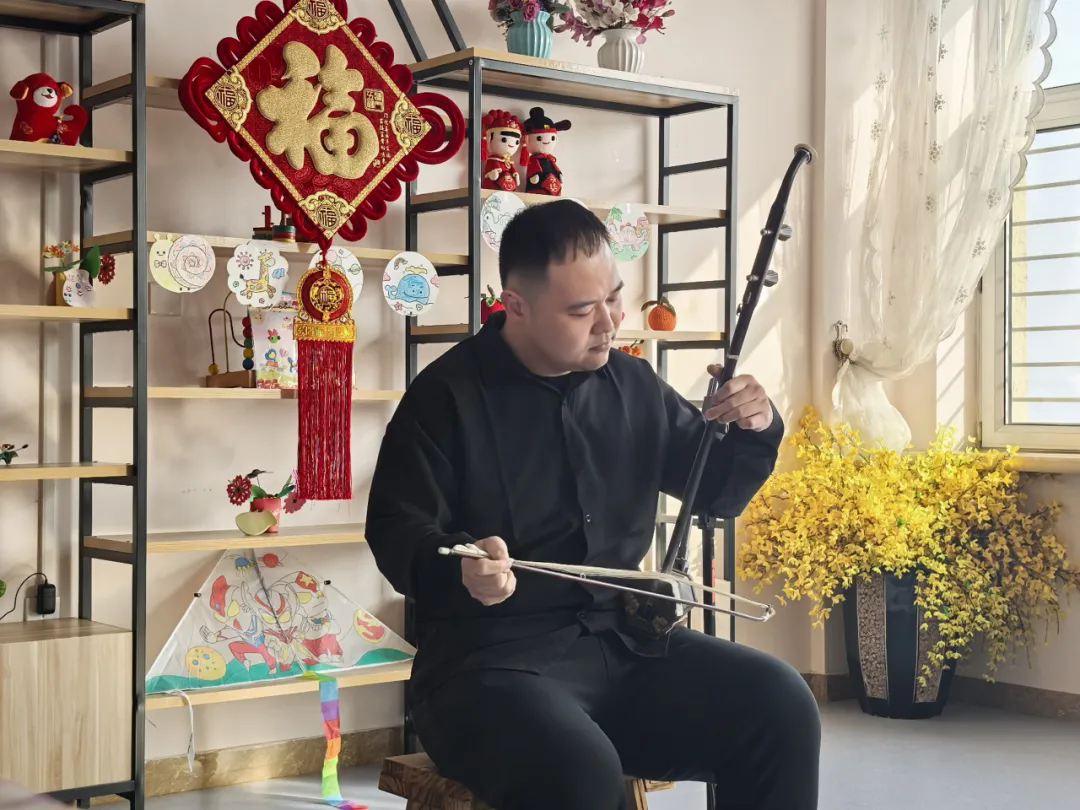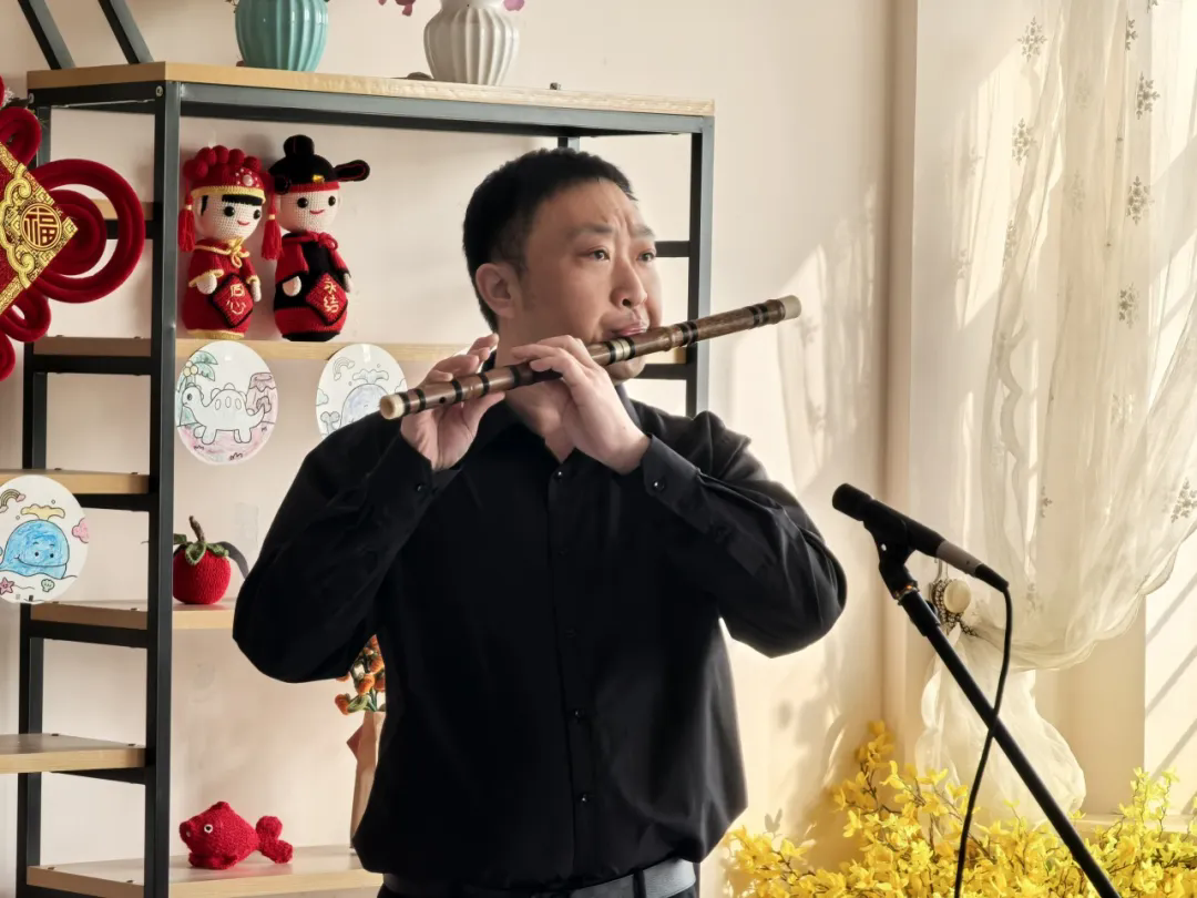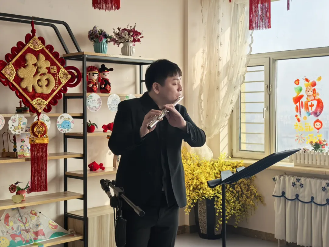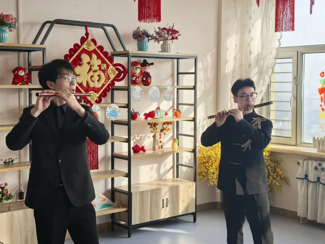 竹笛重奏《跑旱船》拉开了演出序幕,欢快灵动的节奏瞬间点燃现场气氛。随后,《桃李园序》琴箫和鸣,古琴的醇厚与箫的清亮交织,营造出空灵悠远的意境;独唱《荷塘月色》婉转的旋律温暖人心;笙独奏《爱我中华》激昂嘹亮,将现场气氛推向高潮;长笛《春天来了》轻盈灵动,带来春天的生机;二胡演奏《赛马》铿锵有力,引得老人们频频颔首、拍手应和;最后,省音协竹笛专委会主任李继冬献上《牧民新歌》,悠扬的笛声描绘出牧民生活的美好图景,为演出画上圆满句号。