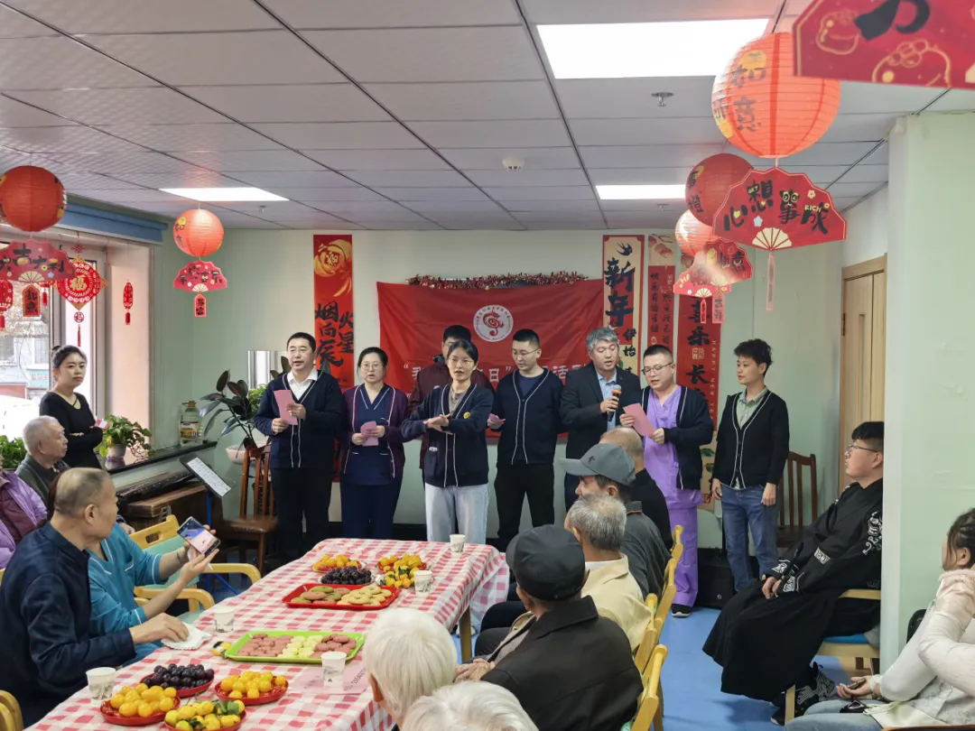 志愿演出在琴箫合奏《挟仙游》中拉开帷幕,清越的琴声与悠远的箫音将观众带入宁静高远的意境;陶笛独奏《萱草花》以悠扬旋律传递出对母亲的深切感念;二胡名曲《喜洋洋》明快的节奏烘托出节日的喜庆氛围;竹笛独奏《扬鞭催马运粮忙》以激昂的旋律描绘出丰收时节的热闹景象;《京调》以浓郁的戏曲韵味,展现了国粹艺术的独特魅力;诗朗诵《赞歌》抒发了对党和政府的感恩与赞美之情;长笛演绎的《梁祝》音韵婉转缠绵、深情细腻,令在场观众沉醉其中;尤其令人动容的是,一位九十余岁的长者登台演唱《看秧歌》,歌声洪亮、精神矍铄,赢得全场热烈掌声;男女声二重唱《夕阳红》以饱满深情的歌声唱出了对老年群体晚晴生活的美好祝愿,“最美不过夕阳红,温馨又从容……”熟悉的旋律引发共鸣,许多老人轻声应和;最后,康复医院的医护社工共同献唱《感恩的心》,以歌声传递温暖与谢意,为整场活动画上了一个圆满的句号。